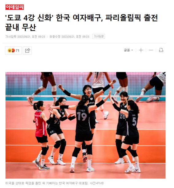 여배는 도쿄 올림픽 4강 후 김연경 및 양효진 김수지 선수 은퇴 이후 국대 전력 급격히 약화. 네이션스 리그 2시즌 연속 전패, 23연패, 올림픽 출전 실패.