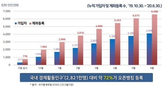 [IE 금융] 하나의 애플리케이션(앱)으로 모든 은행계좌 조회와 입출금이 가능한 오픈뱅킹 사용자가 출시 6개월 만에 4000만 명을 넘었다. 국내 경제활동인구 10명 중 7명이 오픈뱅킹을 활용하고 있는 것이다.