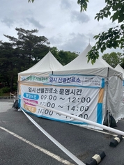 [IE 사회] 연이은 폭염 속에서 신종 코로나바이러스 감염증(코로나19) 선별진료를 하는 종사자들을 위해 경찰, 소방서 및 여러 지자체가 지원에 나서고 있다. 현재 대부분의 선별진료소가 컨테이너를 비롯한 별도 임시공간인 만큼 휴게시설 설치가 어려울 뿐만 아니라 냉방시설도 제대로 갖춰지지 않아 의료진들이 어려움을 겪고 있다. 26일 소방서, 경찰 등에 따르면 우선 대전소방본부가 야외 선별진료소 의료진에게 쉼터 역할을 할 수 있는 소방회복지원차량을 제공했다. 버스 안 온도는 25도가량으로 이곳에서 종사자들이 방호복을 벗은 채 수분을 보충하고 식사도 할 수 있다. 이 차는 다음 달 20일까지 운영된다. 경찰청은 안양역 임시 선별검사소와 안양 삼덕공원 선별진료소에 의료진 및 종사자들이 휴식을 취할 수 있도록 경찰버스를 배치했다. 이번에 배치한 경찰버스는 무시동 냉방이 가능한 수소전기차량으로 무시동 상태에서 36시간 동안 에어컨을 가동할 수 있다. 서울 용산구에서도 무더위에서 온열사고가 발생하지 않도록 코로나19 선별진료소에 폭염 휴식시간을 운영하기로 했다. 다음 달 13일까지 이곳 선별소는 오전 9시부터 정오까지 운영한 뒤 오후 3시까지 운영을 멈춘다. 이후 오후