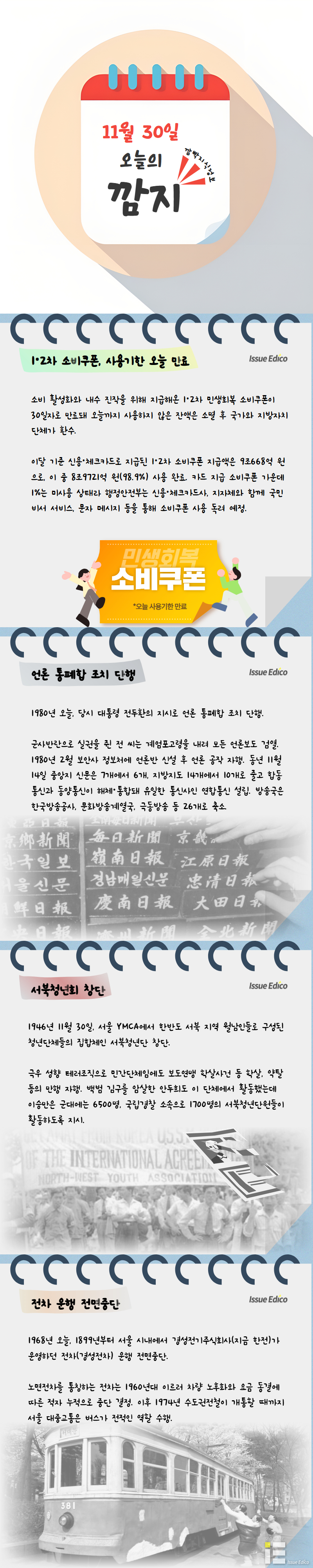 1980년 오늘, 당시 대통령 전두환의 지시로 언론 통폐합 조치 단행. 군사반란으로 실권을 쥔 전 씨는 계엄포고령을 내려 모든 언론보도 검열. 1980년 2월 보안사 정보처에 언론반 신설 후 언론 공작 자행. 같은 해 11월 14일 중앙지 신문은 7개에서 6개, 지방지도 14개에서 10개로 줄고 합동통신과 동양통신이 해체·통합돼 유일한 통신사인 연합통신 설립. 방송국은 한국방송공사, 문화방송계열국, 극동방송 등 26개로 축소.