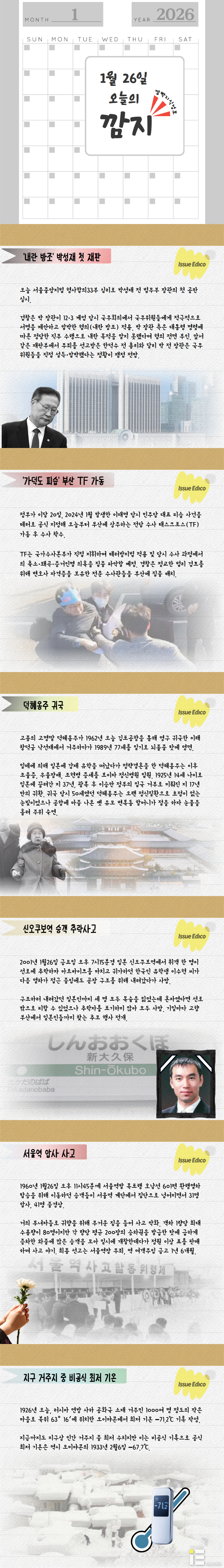 과거와 현재의 오늘 벌어졌던 '깜'빡 놓치고 지나칠 뻔한 이슈들과 엮인 다양한 '지'식들을 간단하게 소개합니다.