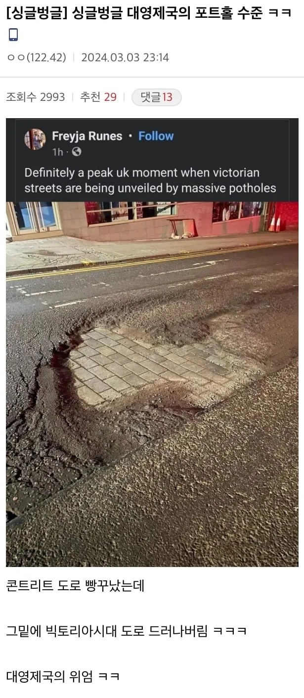 저걸 안치우고 아스팔트로 덮어버린게 영국 답네..