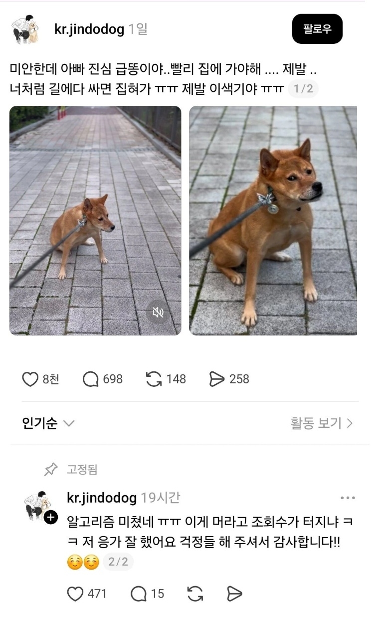 산책더하고싶으면 집앞에서 들어앉고 버티더라 이새끼들