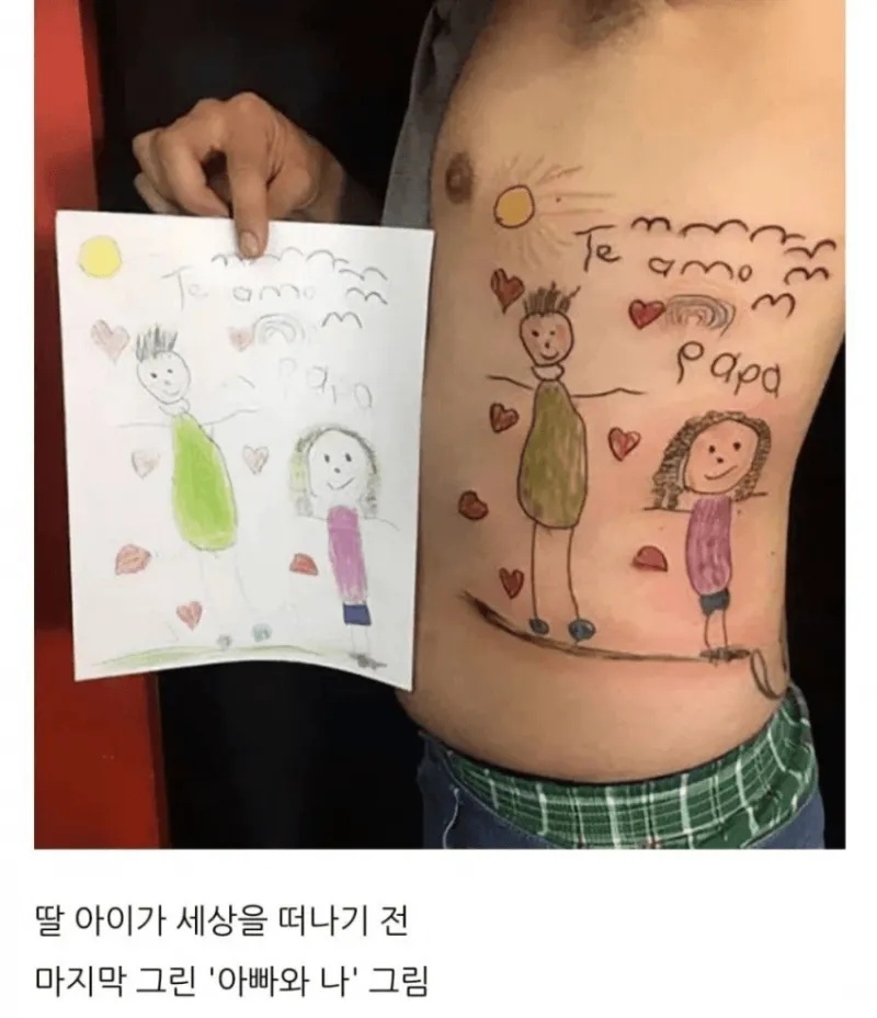 목숨보다도 소중했던 자식을 몸에 새겼구만