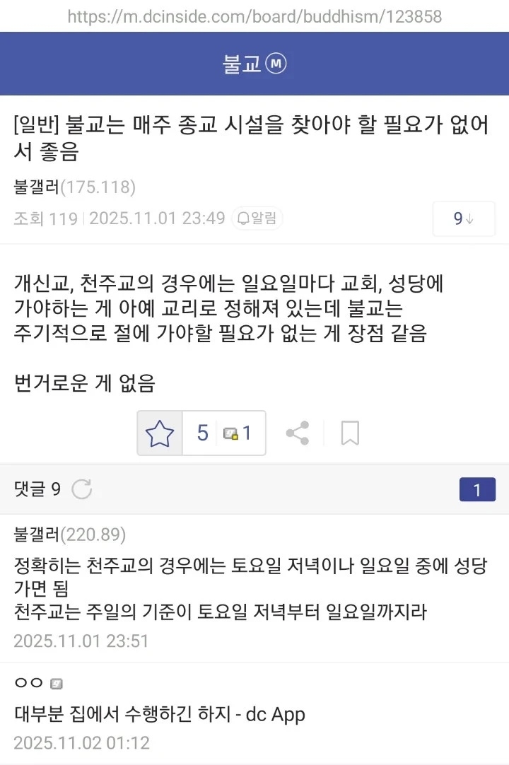 불교의 장점은 절에 찾아가도 민폐만 안끼치면 아무도 신경 안쓴다는 거지.