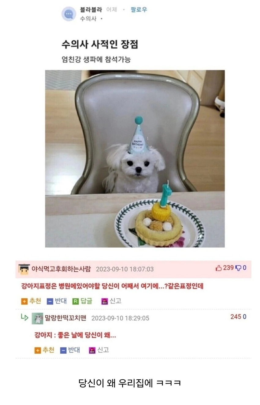 강아지 : 내 부랄 떼간놈이 여길 왜왔지ㅋㅋ