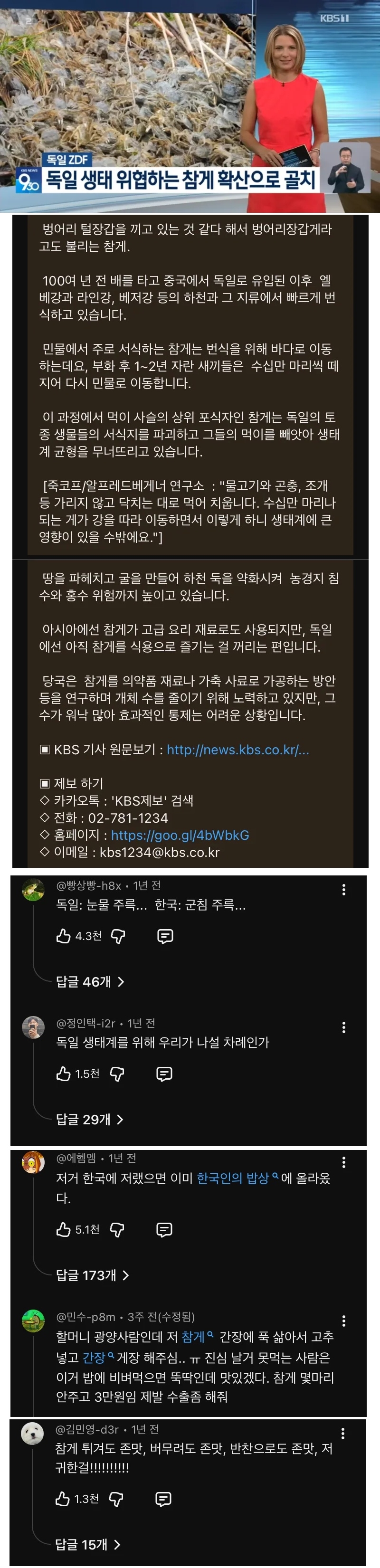 독일은 중국에서 넘어온 참게 때문에 골치중(1년전 뉴스)