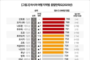 한국인들 아시아여행 지역별 종합만족도