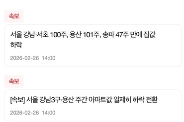 강남 서초 100주 만에 집값 하락 전환
