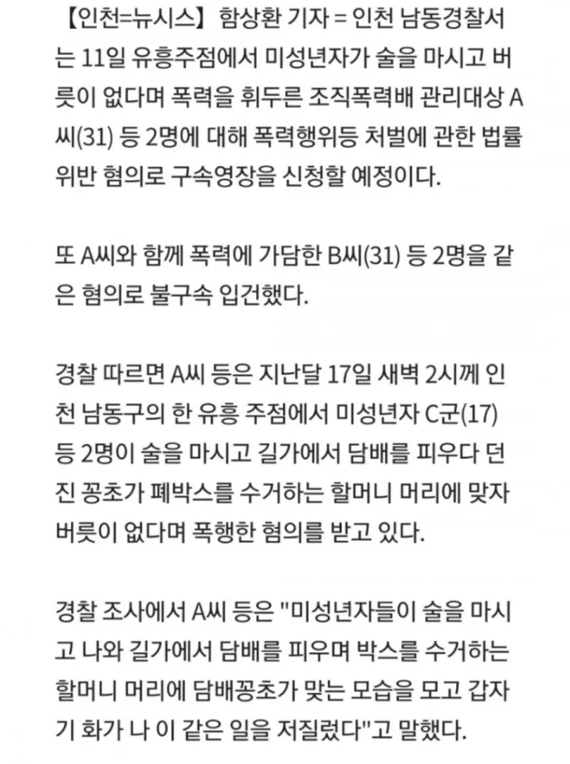 인천 폭력배 고등학생 폭행사건