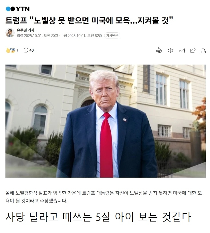 저 말을 듣고 노벨 평화상을 주면 설령 실제로 노벨상 받을 업적이 있더라도 노밸상 권위 실추인것 같은데