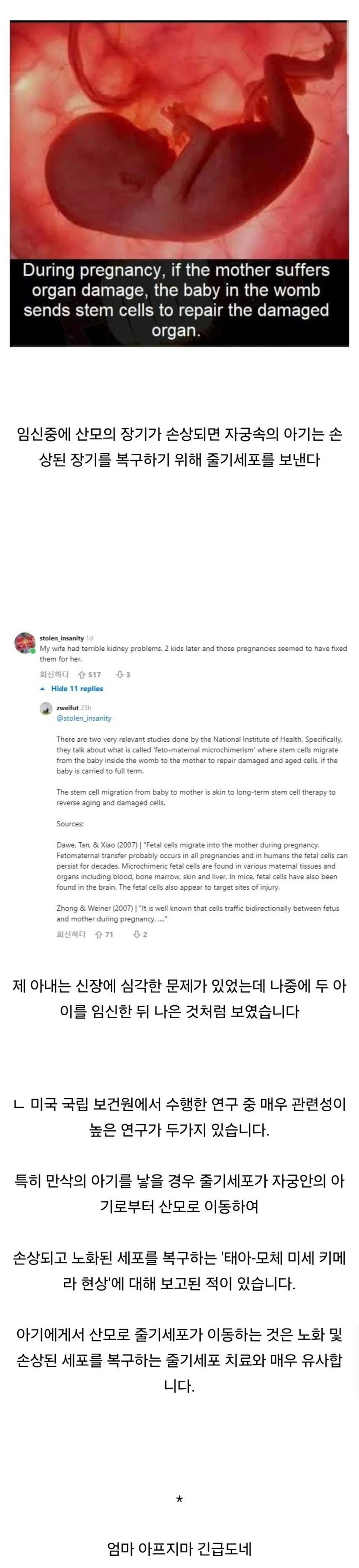 * | 임신 중 엄마가 아프면 아이가 줄기세포 보내 치료 [3] | 향이있는밤 | 2025/10/08 |