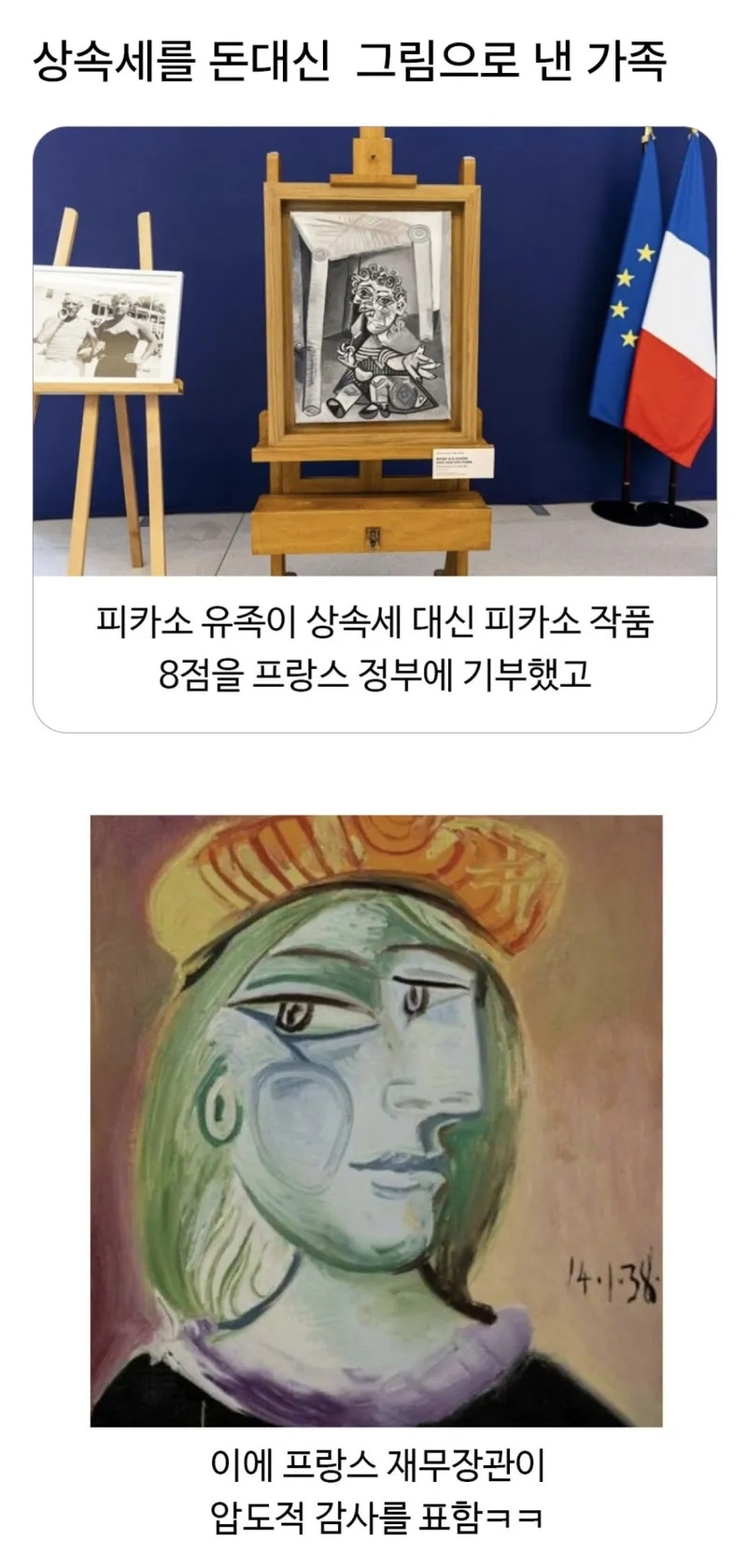 우리나라였다면 유가족이 소유한 피카소 작품 절반을 상속세로 내야 합니다.(현물로 가능가다는 전제하에)