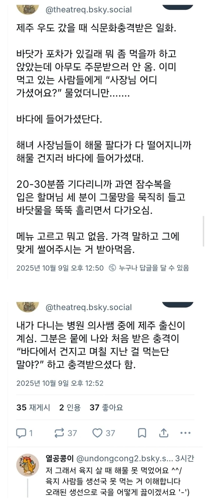* | 제주도사람 바다에서 건지고 며칠지난걸 먹는다고 [3] | 까칠한냥이 | 2025/10/12 |