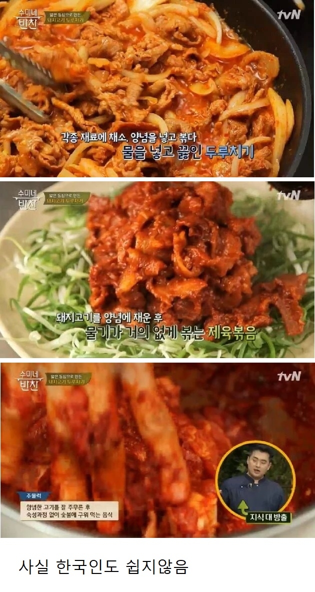 기름에 볶은 제육도 맛있고 야채국물 흥건한 제육도 맛있고