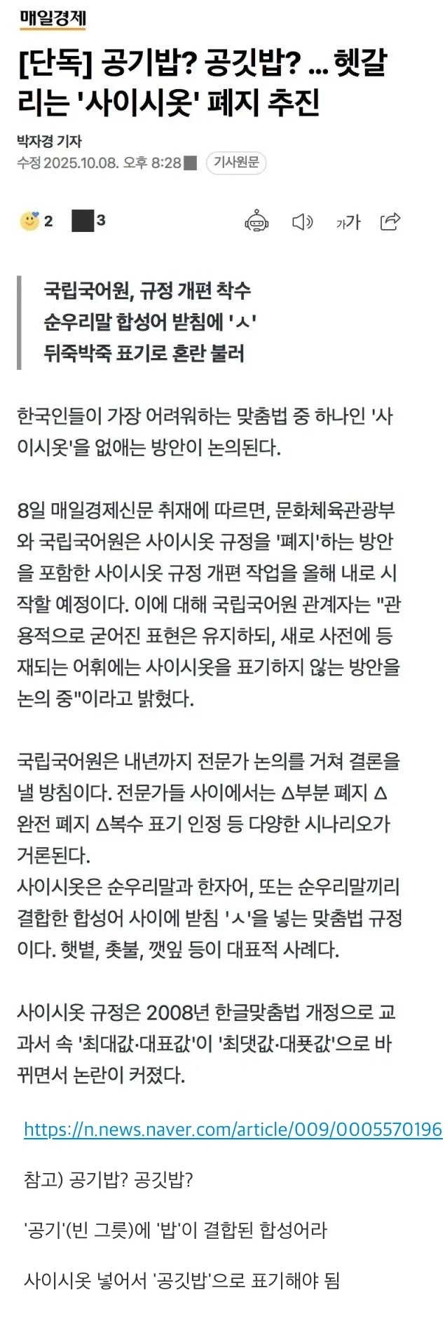* | 국립국어원 '사이시옷' 폐지 추진 [3] | 낭인캠퍼 | 2025/10/14 |
