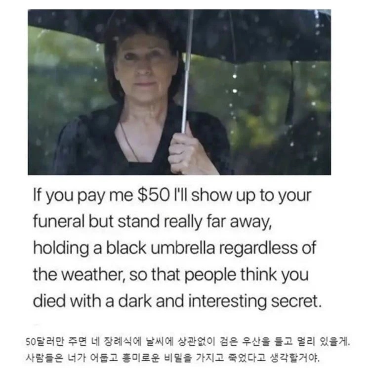 * | 나한테 50달러를 주면 네 장례식을 흥미롭게 만들어줄수 있어 [4] | 하얀물결 | 2025/10/14 |