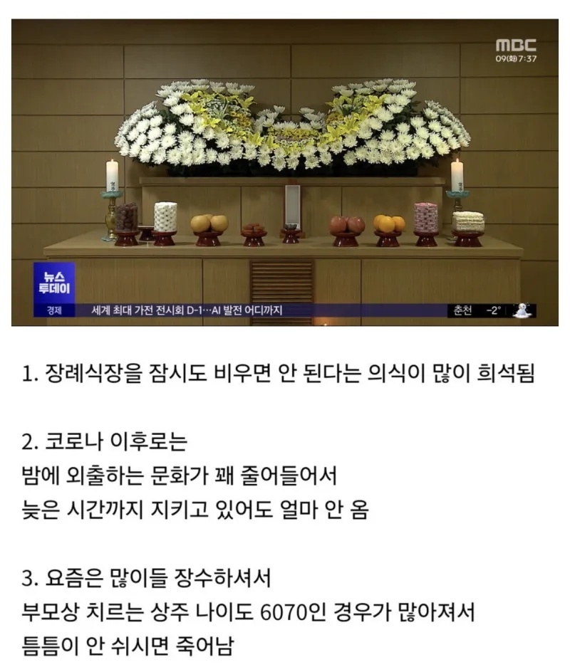 | * | 요즘 장례식에서 상주가 24시간 지키지 않는 경우가 늘어남. [4] | 낭인캠퍼 | 2025/11/05 |