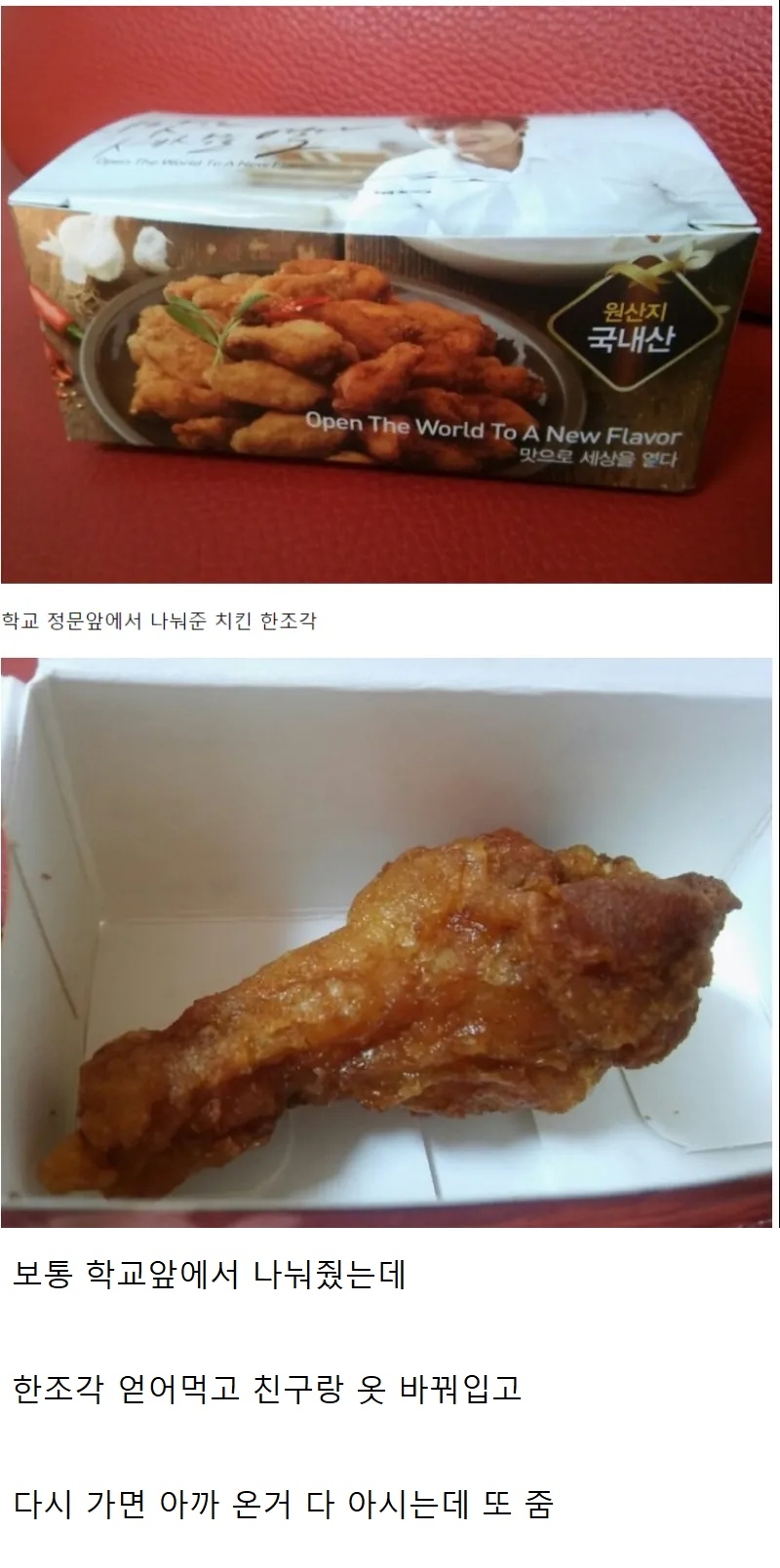 반장 생일에 햄버거 쏠때 치킨업체 후원으로 저거 하나씩 다 받아먹기도 함