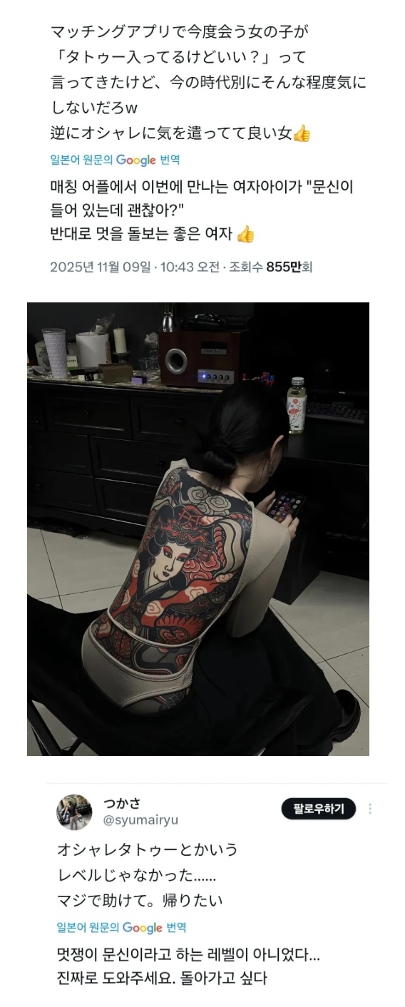 이뻐도 문신 있으면 좀 레터링 정도면 모르겠는데 이레즈미는