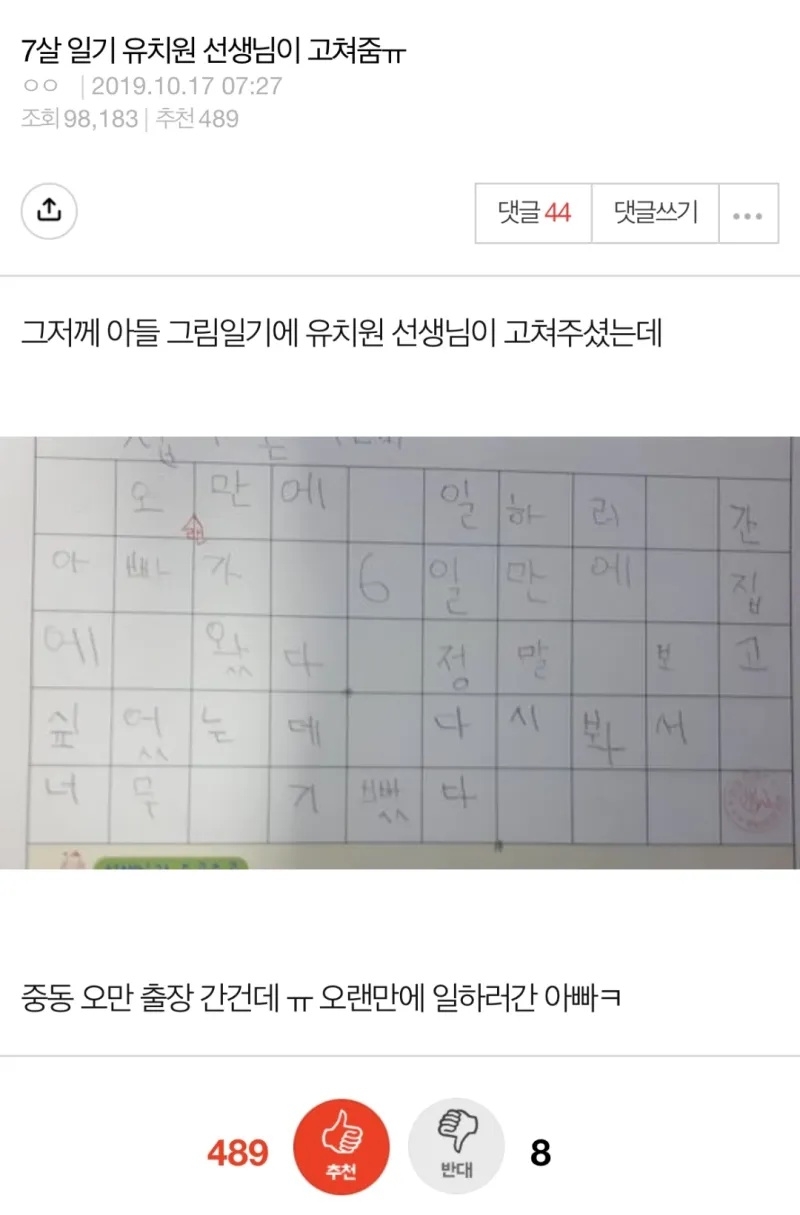 | * | 유치원 선생님이 고쳐준 일기 [3] | 기승전 | 2025/11/14 |