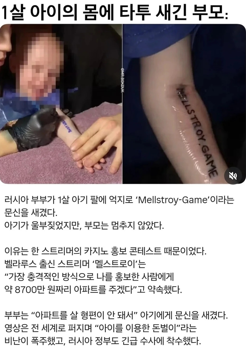 1살 아기한테 문신한 미친부모