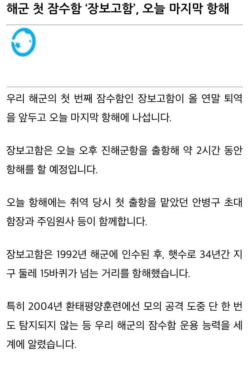 | * | 대한민국 첫 잠수함 “장보고함”, 오늘로 마지막 항해. [3] | 까칠한냥이 | 2025/11/21 |
