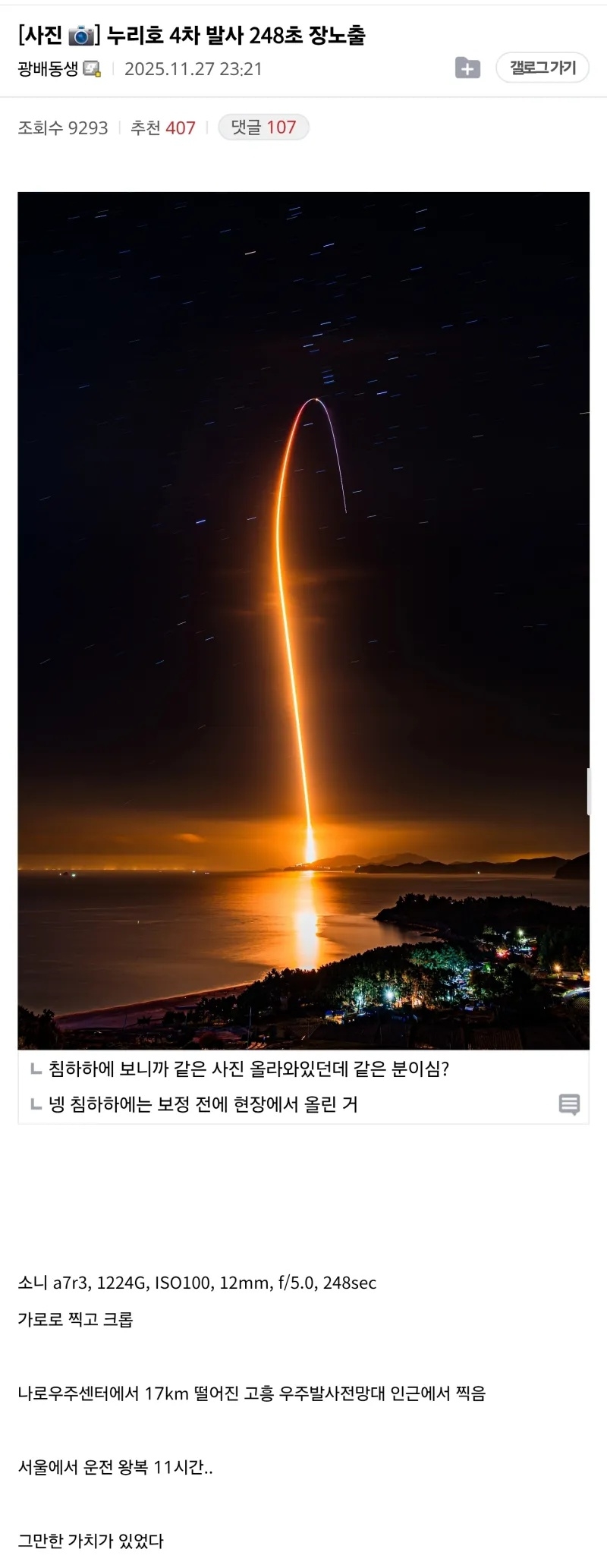 11시간동안 운전해서 찍은 누리호 사진