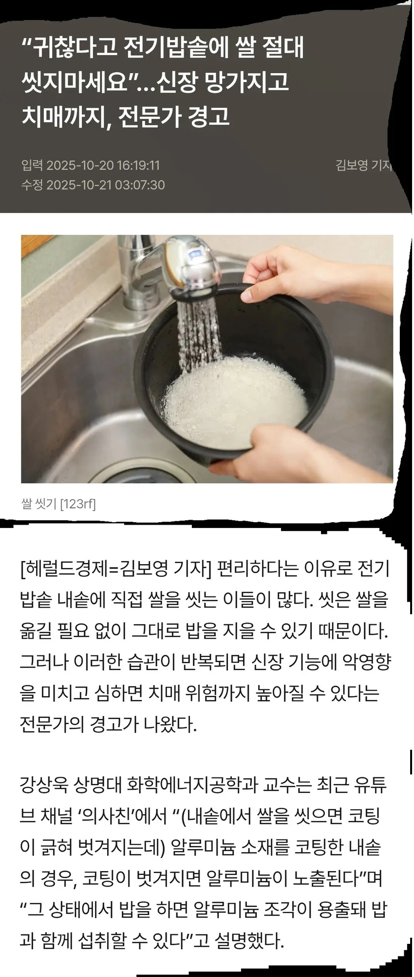 전문가 경고 전기밥솥에 절대 쌀 씻지 마세요
