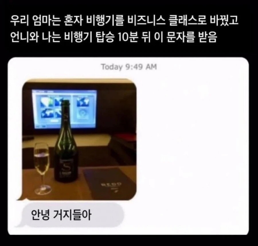 혼자만 비즈니스클래스로 바꾼 엄마.