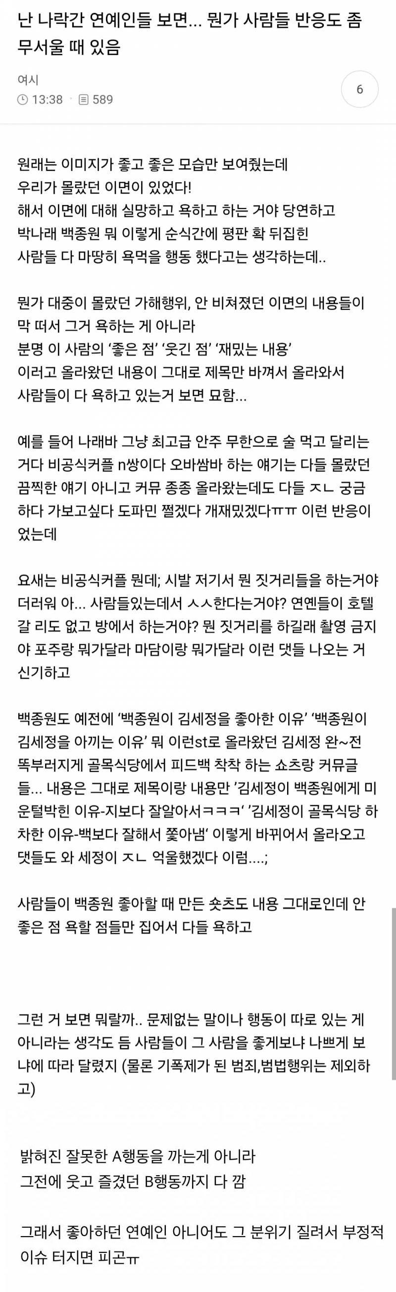 | * | 나락 간 연예인들 보면 무서울 때가 좀 있다. | 센키건 | 2025/12/24 |