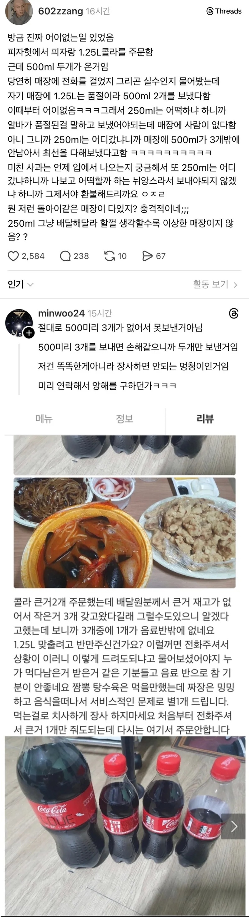 배달주문 콜라 사건들.
