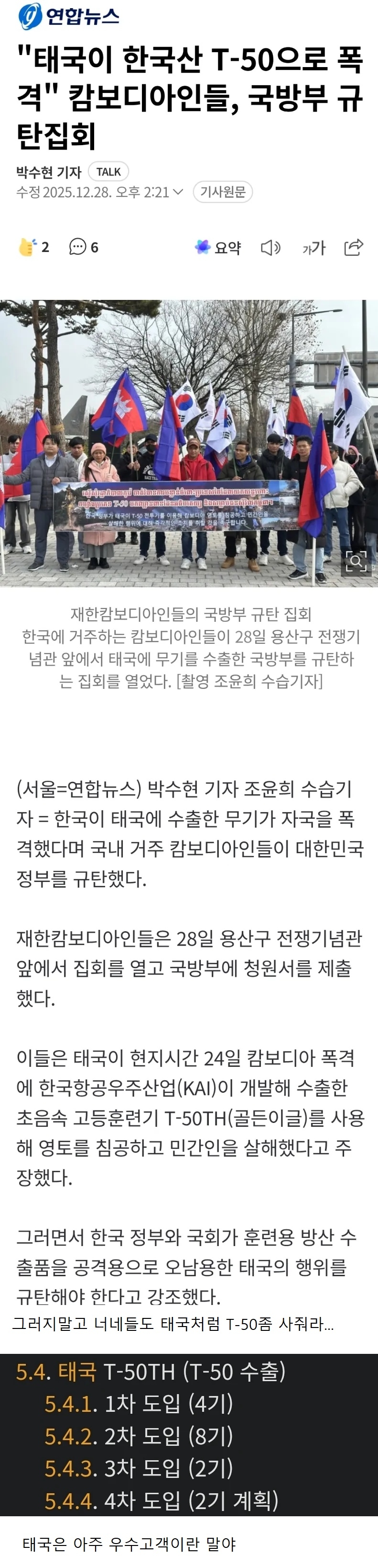 | * | 태국이 한국산 T-50으로 폭격 캄보디아인들, 국방부 규탄집회 | 센키건 | 2025/12/30 |