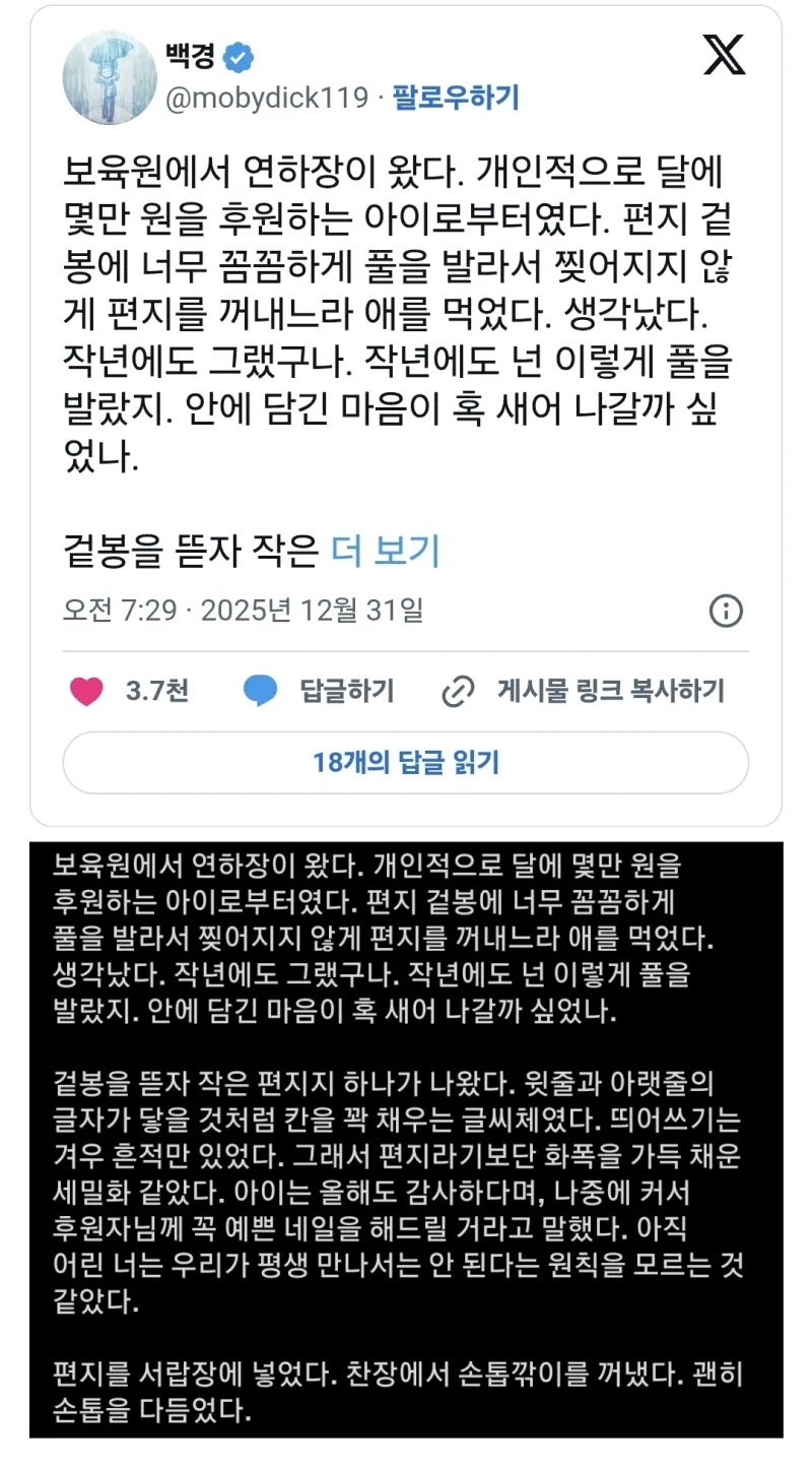 * 보육원에서 연하장이 왔다 금선기 2026/01/03