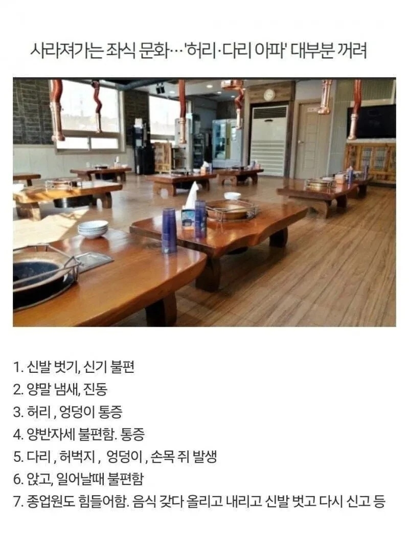 잘 바뀐거 같은게 좌식이 허리에 무리가 많이 가는 자세임