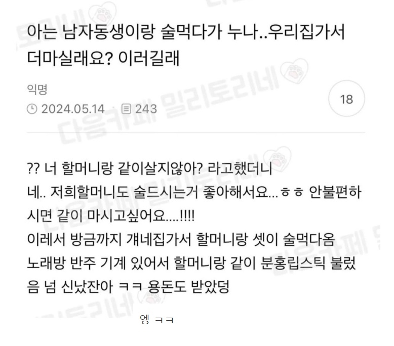 할머니랑 같이 술 마시는 손주인 것도 호감 ㅋㅋㅋ