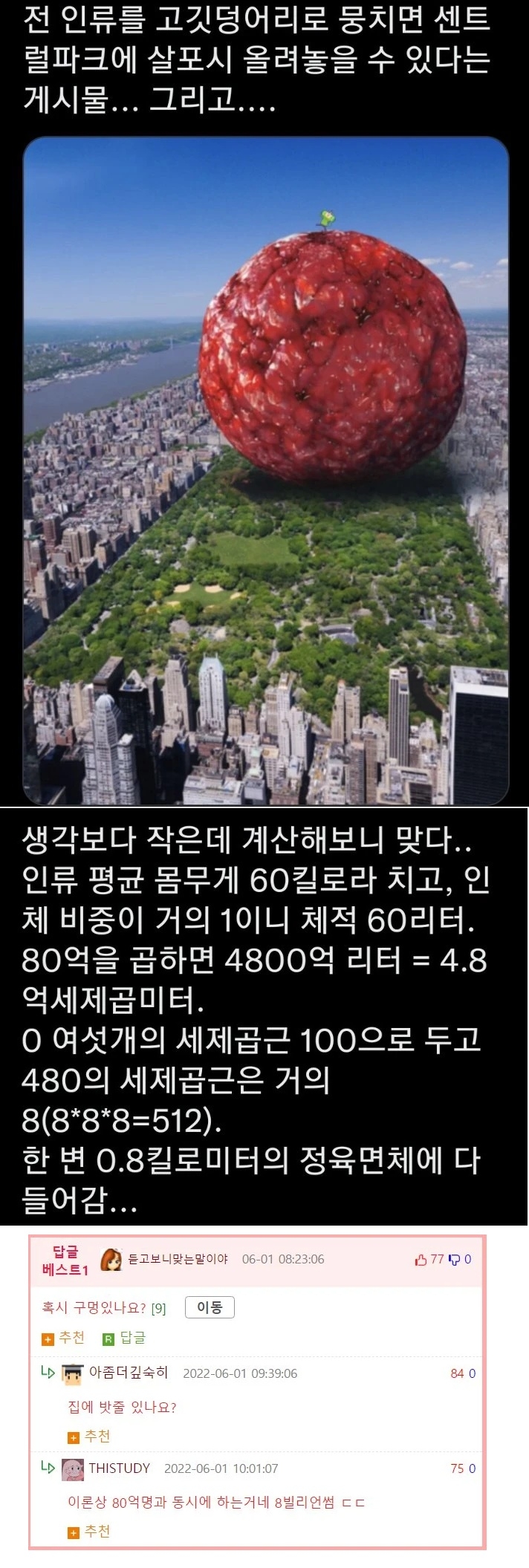 지구 인구 전체 부피가 0.5 km3 정도인데