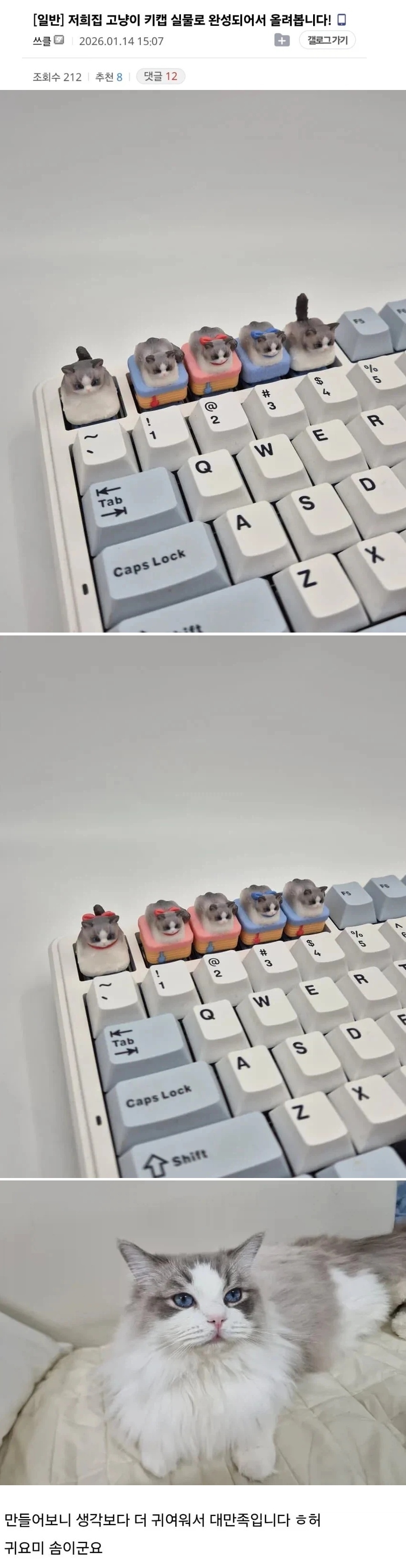 | * | 자기 집 고양이 키캡이 실물로 완성되어서 올린 키캡러. [4] | 낭인캠퍼 | 2026/01/17 |