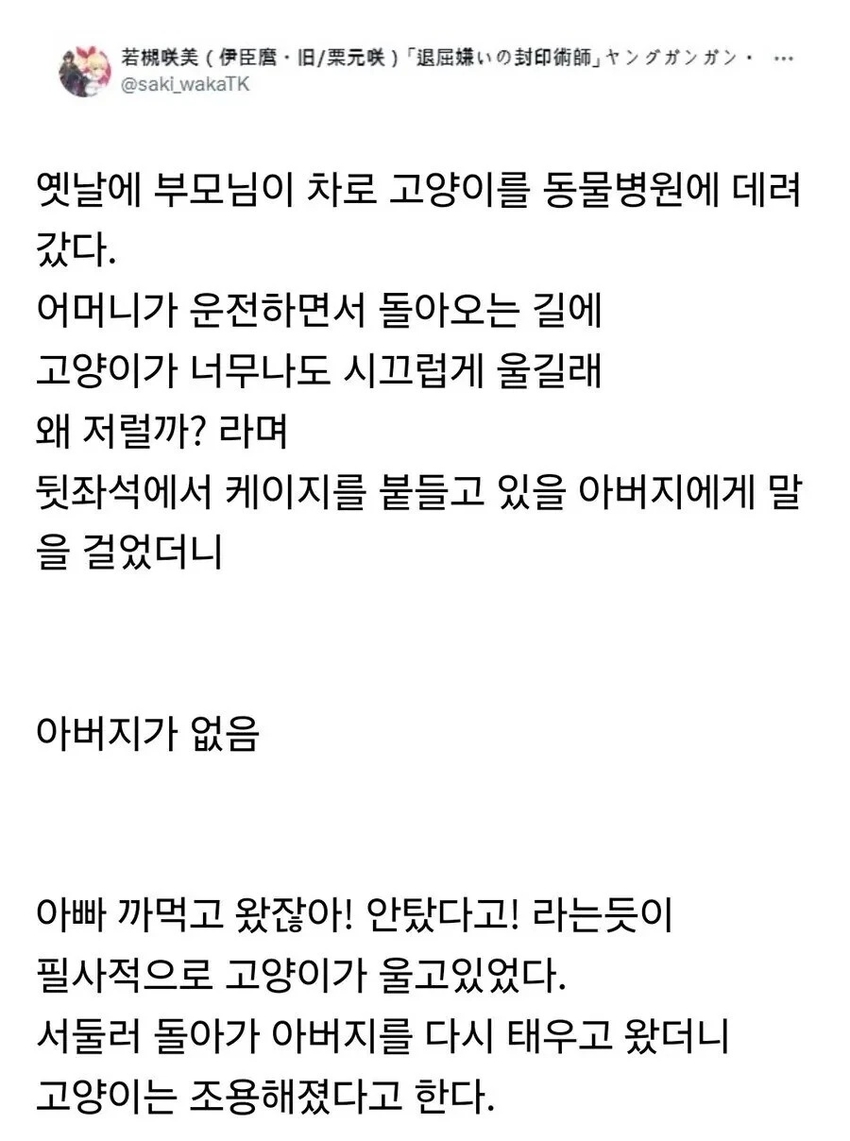 * 아빠 버리고 온 줄 알고 서럽게 운 고양이 센키건 2026/01/24
