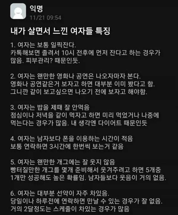 살면서 느낀 여자들 특징