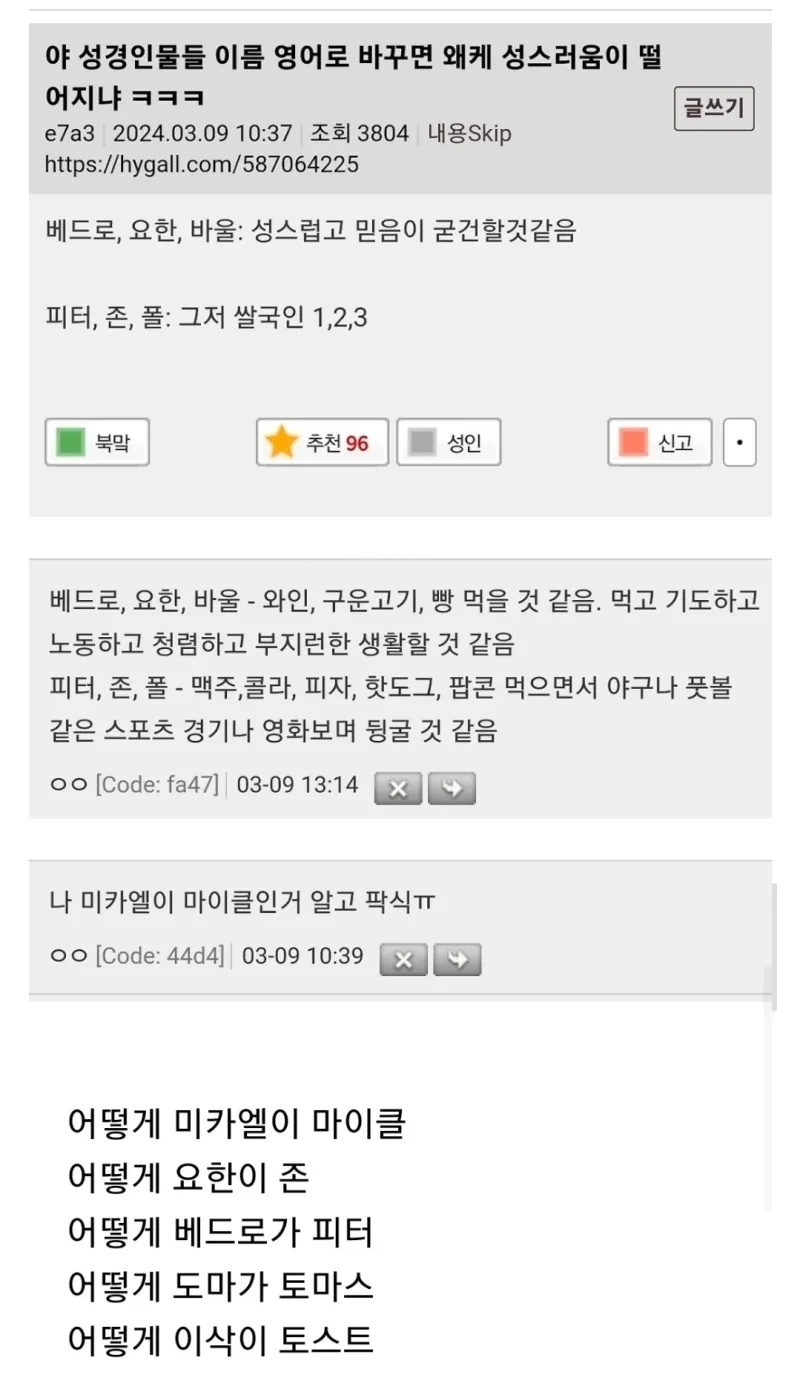 | * | 야 성경인물들 이름 영어로 바꾸면 왜케 성스러움이 떨어지냐 | 향이있는밤 | 2026/01/25 |