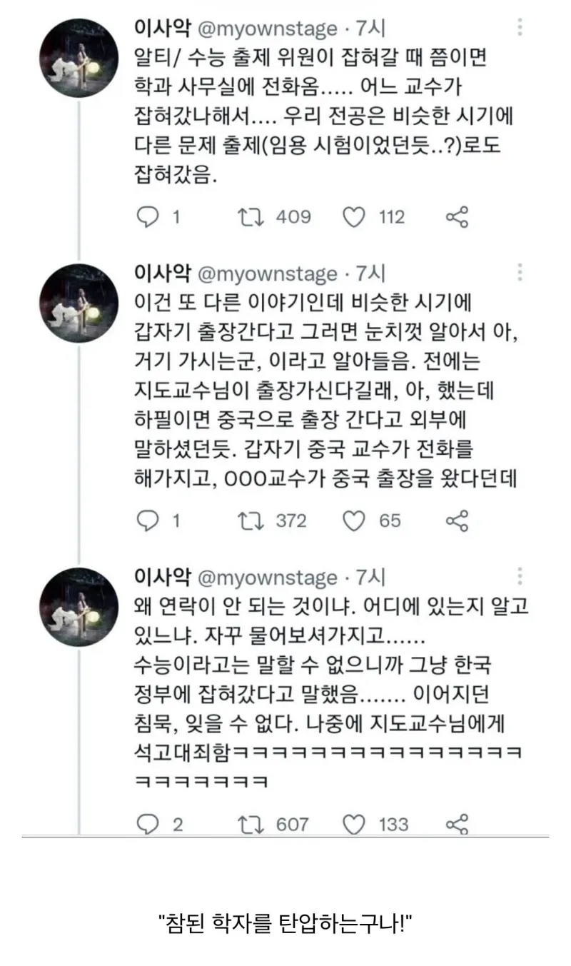 정부에잡혓구나.. 중국교수는생각이깊어지고 .... ㅋㅋㅋ
