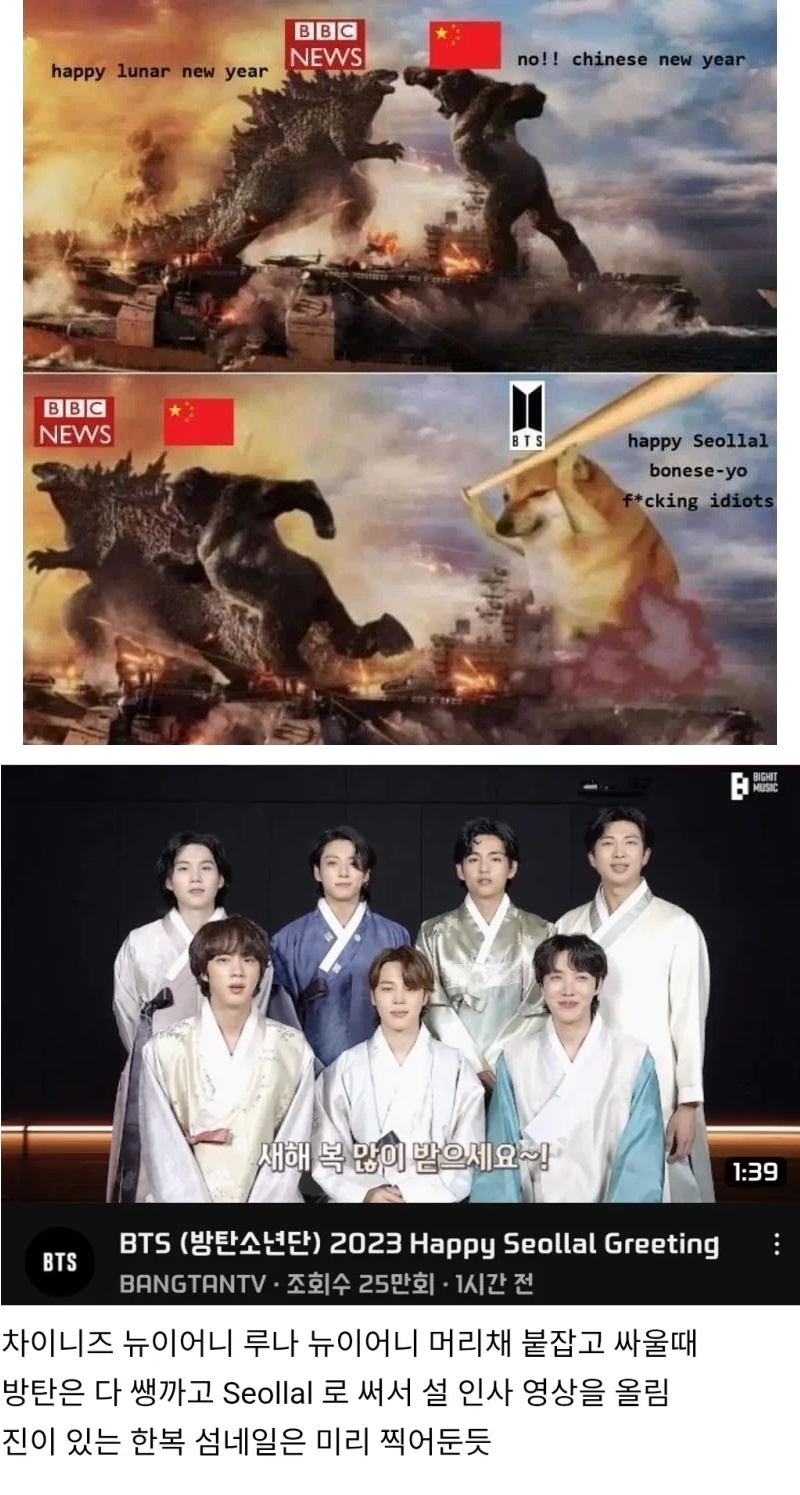 설날이야 이제 꼬우면 bts 보다 인기많은 그룹 데뷔 시켜봐라