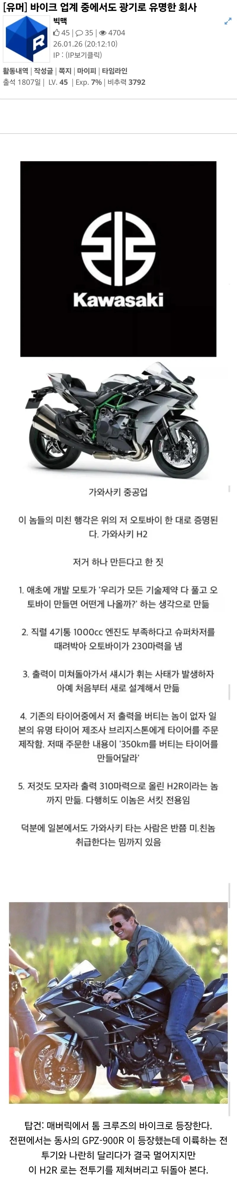 | * | 바이크 업계 중에서도 광기로 유명한 회사 [4] | 낭인캠퍼 | 2026/01/29 |