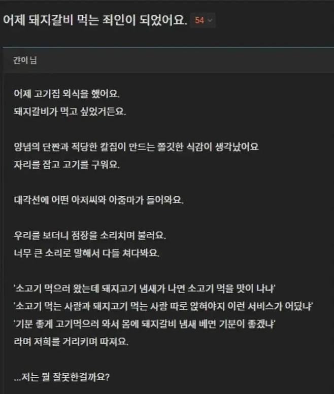 옆에서 저기봐 평소엔 소고기도 못먹는사람인가봐