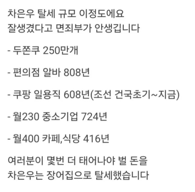 욕심이 저리 많을 줄이야. 자신이 가진 것에 감사할 줄 모르고 탈세에 최선을 다한 게 진짜 별로임.