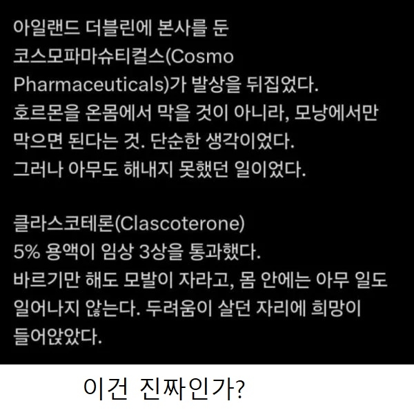 | * | 새로운 탈모약 3상 통과 [4] | 낭인캠퍼 | 2026/02/02 |
