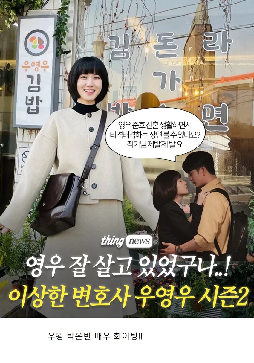시즌1은 뭔가 하다 만 이야기 같았지...특히 우영우 엄마와의 서사는 너무 뭔가 만들다 만 느낌이었다. 그래서 시즌2가 매우 기대된다!