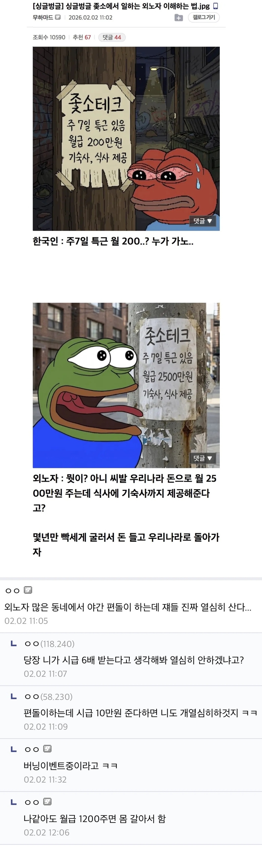 그렇겠네 그돈 다벌어서 지네나라 돌아가면 재산이 갑자기 몇배나 뛰는거잖아 ㅋㅋㅋ