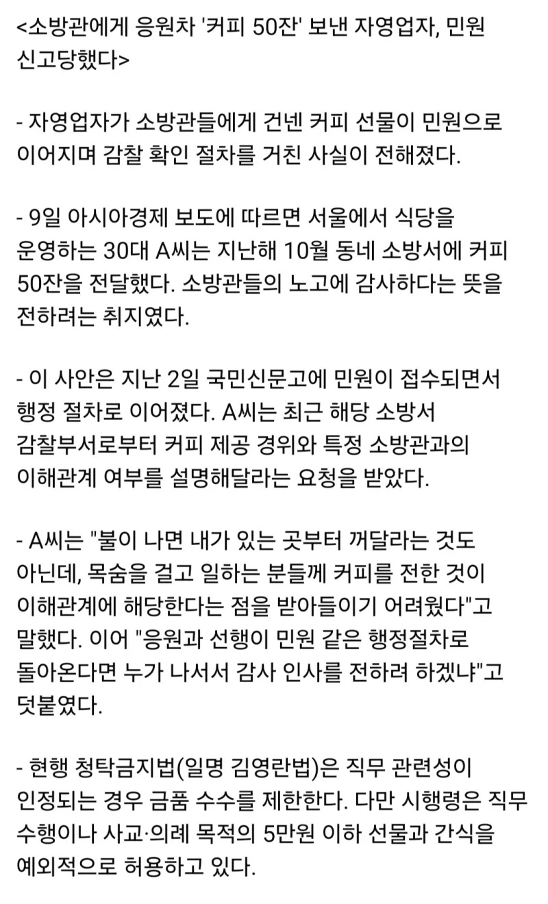 소방관 특정해서 보낸게 아니라 소방관들(단체)에게 보내는 것도 5만원 초과 걸리나보네요?